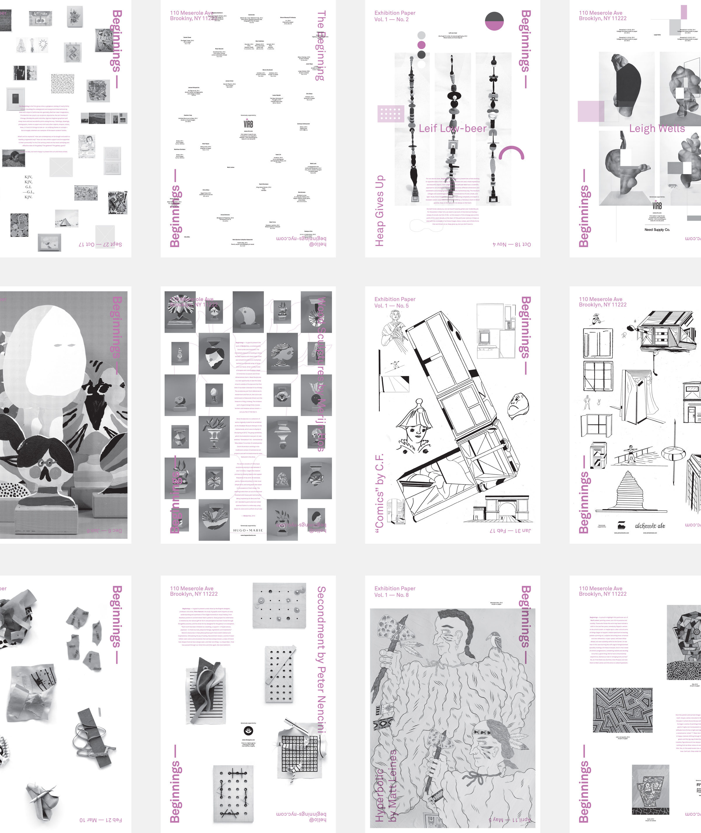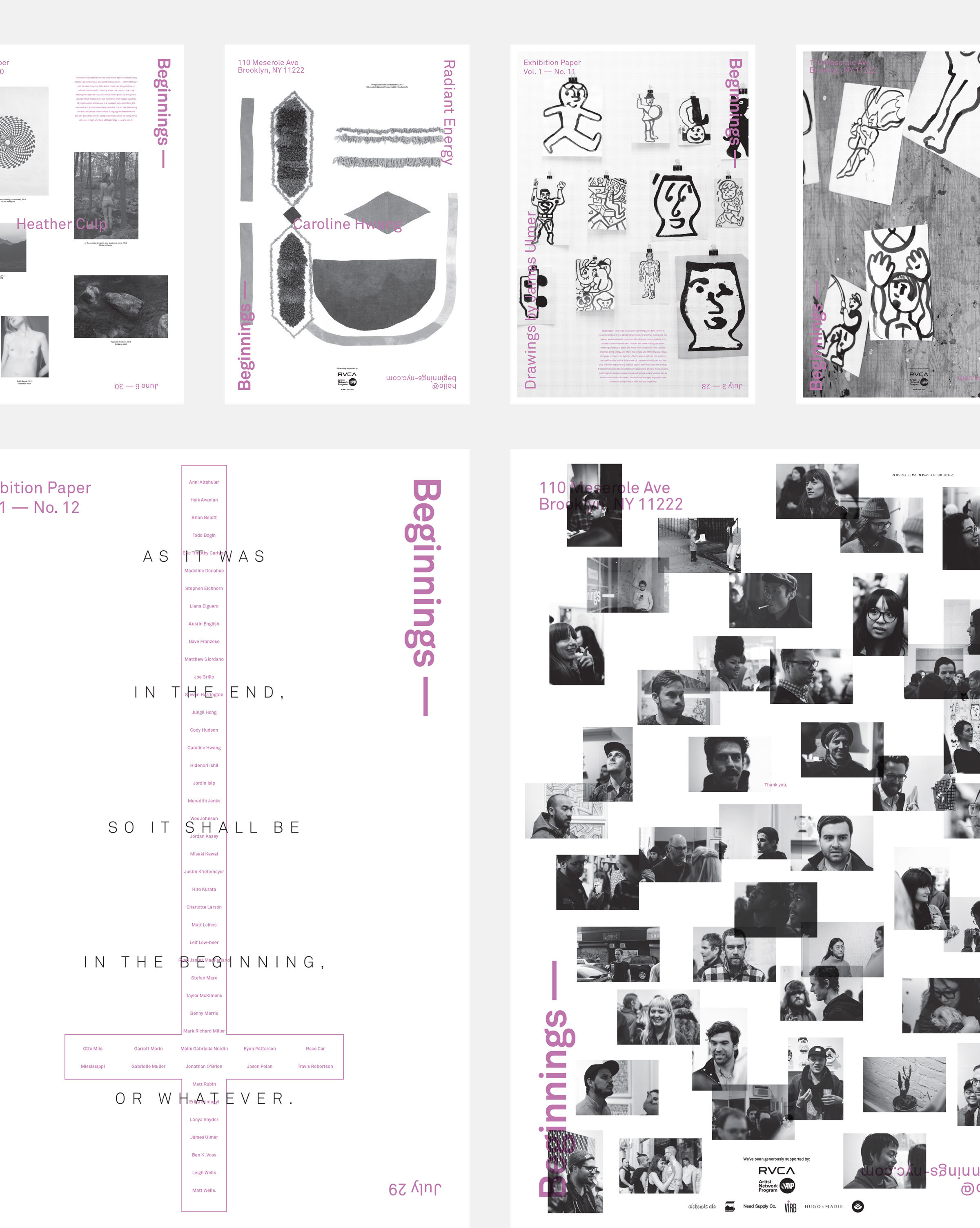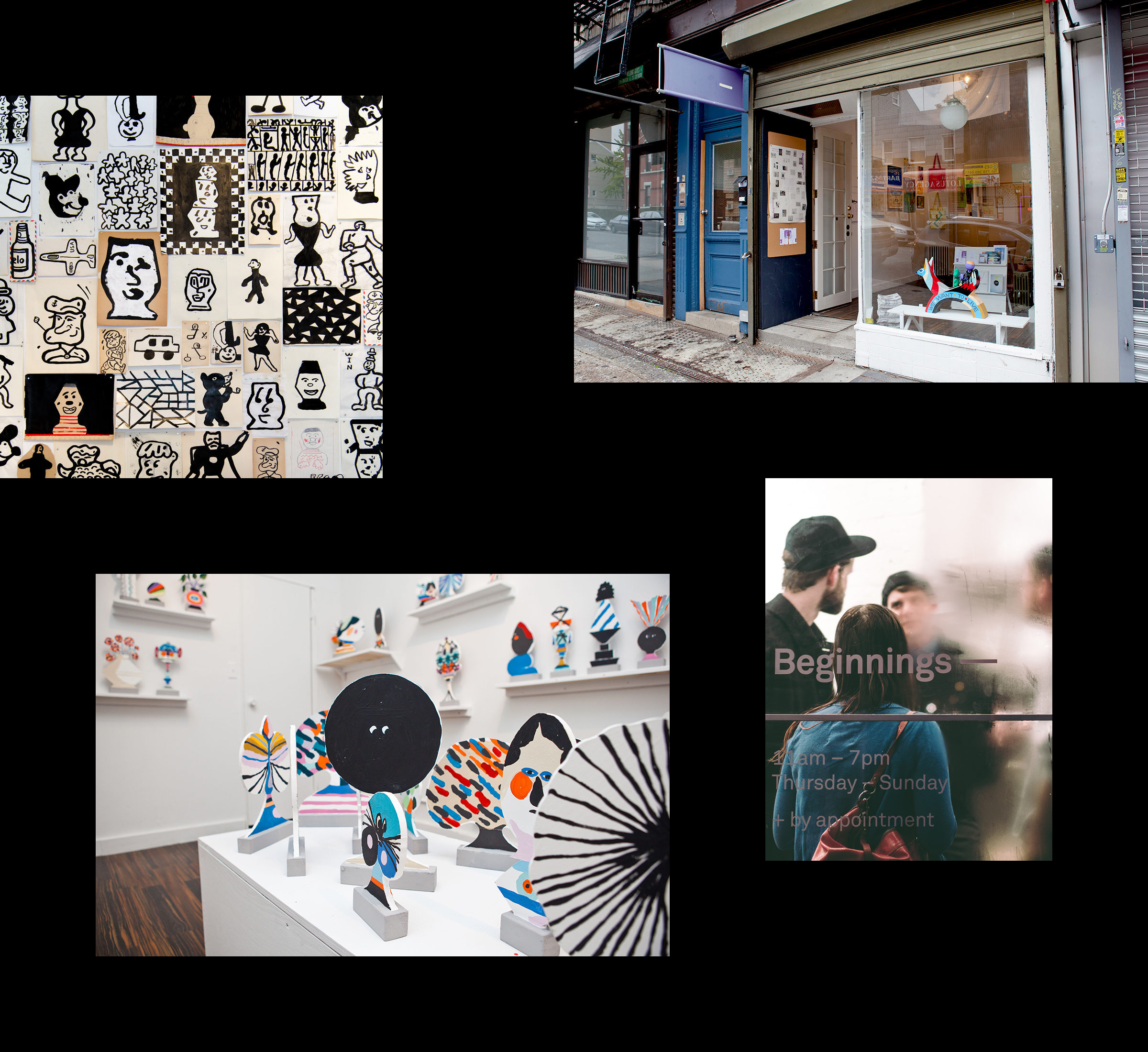 Beginnings — was a one year gallery in Greenpoint, Brooklyn from 2012-13. Forest created the visual identity and website, designed all printed matter and participated as a co-curator responsible for programing the space (alongside Anni Altshuler, Archie Lee Coates IV, Matthew Giordano, Caroline Hwang, Andy Jenkins, and Matt Leines). Beginnings — was a traditional albeit temporary gallery and a digital platform to “present art in a welcoming environment.” Forest’s design elements expanded the impact of this intention beyond the physical storefront space, giving a sense of elegance and cohesion to the project.