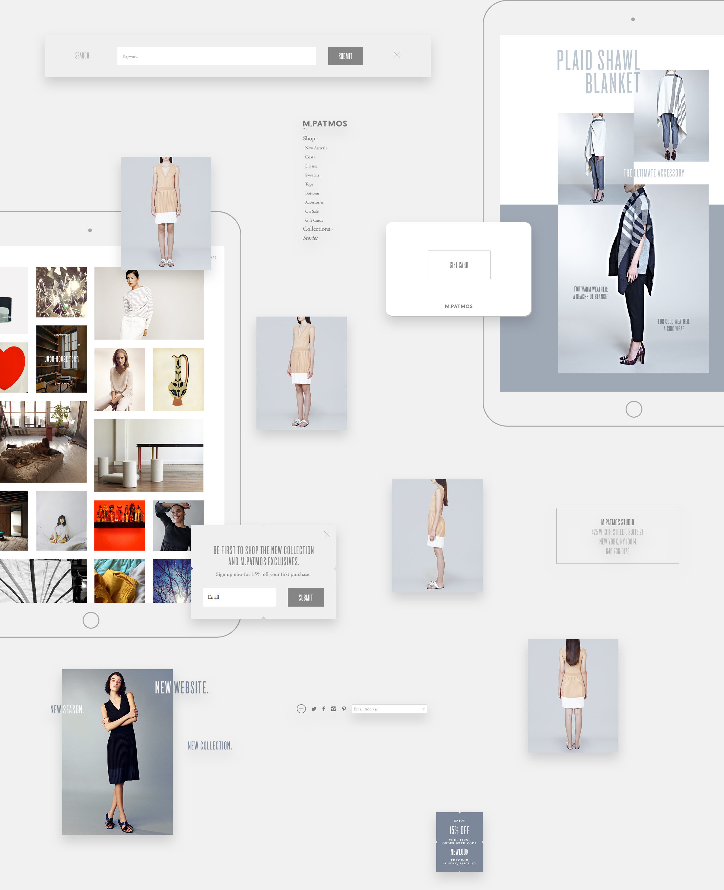 Marcia’s pieces are beautiful and graphic, with a strong sense of color and a purposeful story behind each decision made in her process. We wanted the website itself to take a step back, acting as a subtle container, using shades of grey or muted color to allow the garments to speak for themselves.
