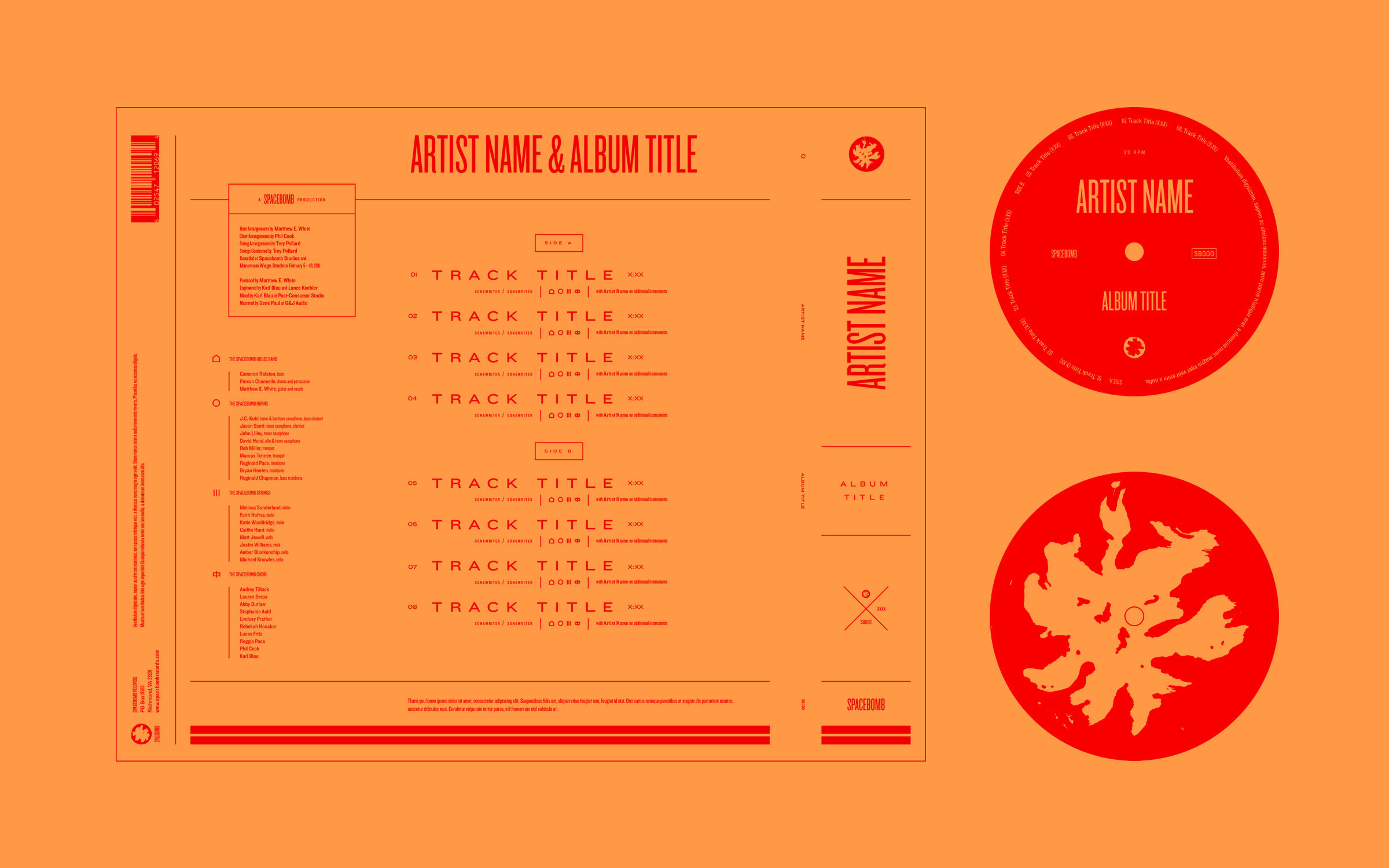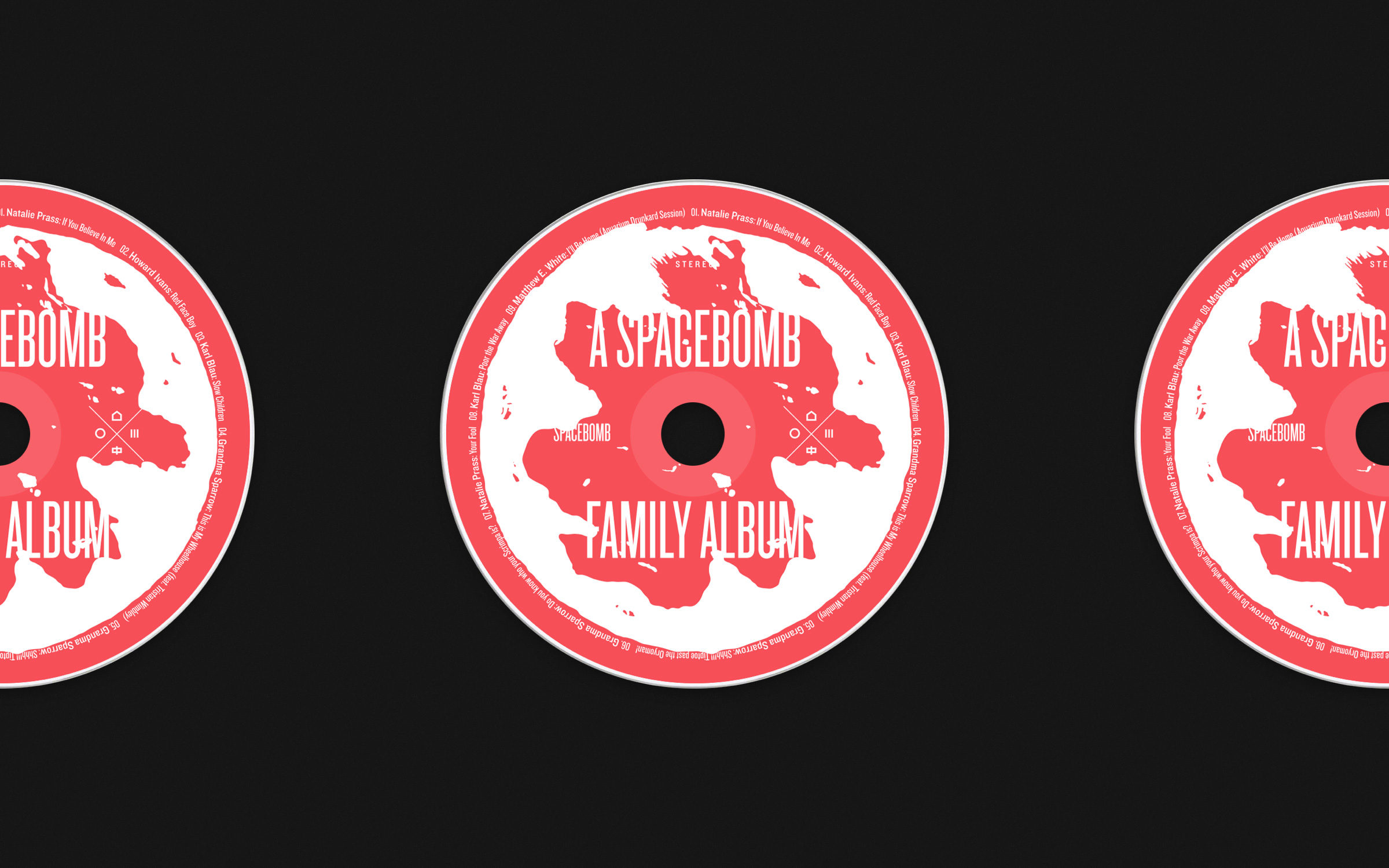 The initial releases followed a strict visual system: each release was assigned its own unique “cloud,” a variant icon based on the main Spacebomb logo. Each release features a set group of symbols which identify the appearance of the House Band, Horns, Strings and Choir.