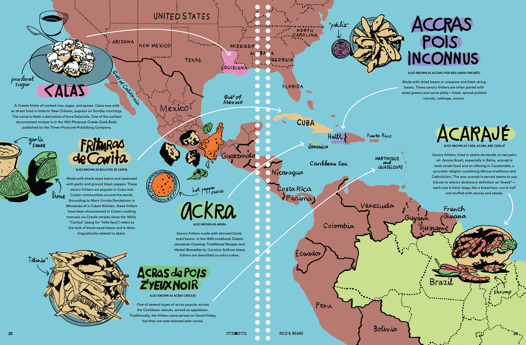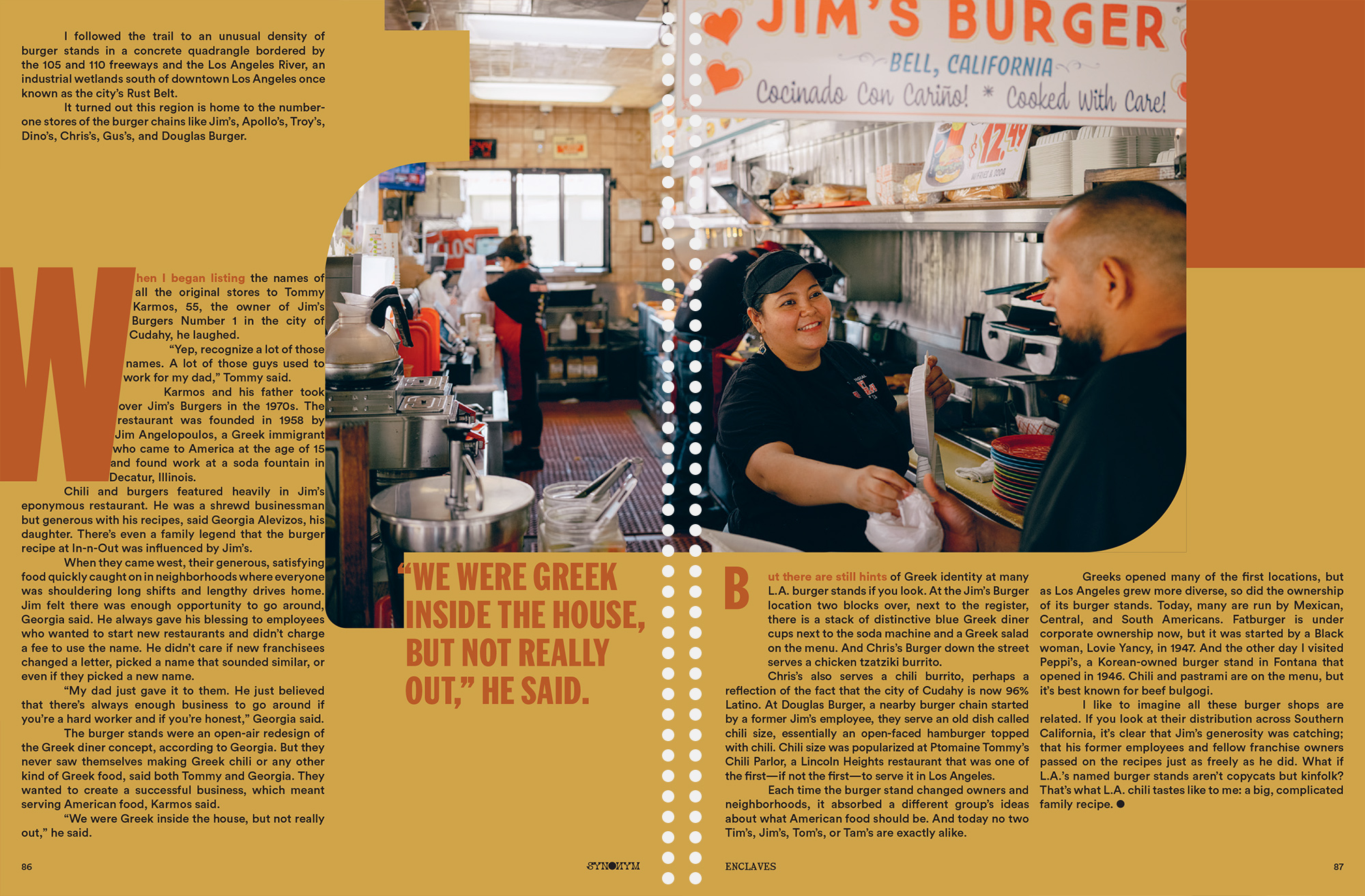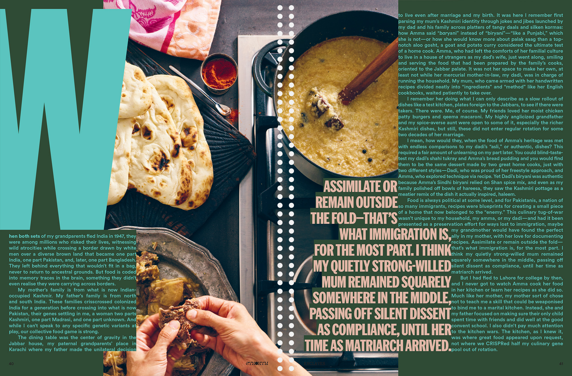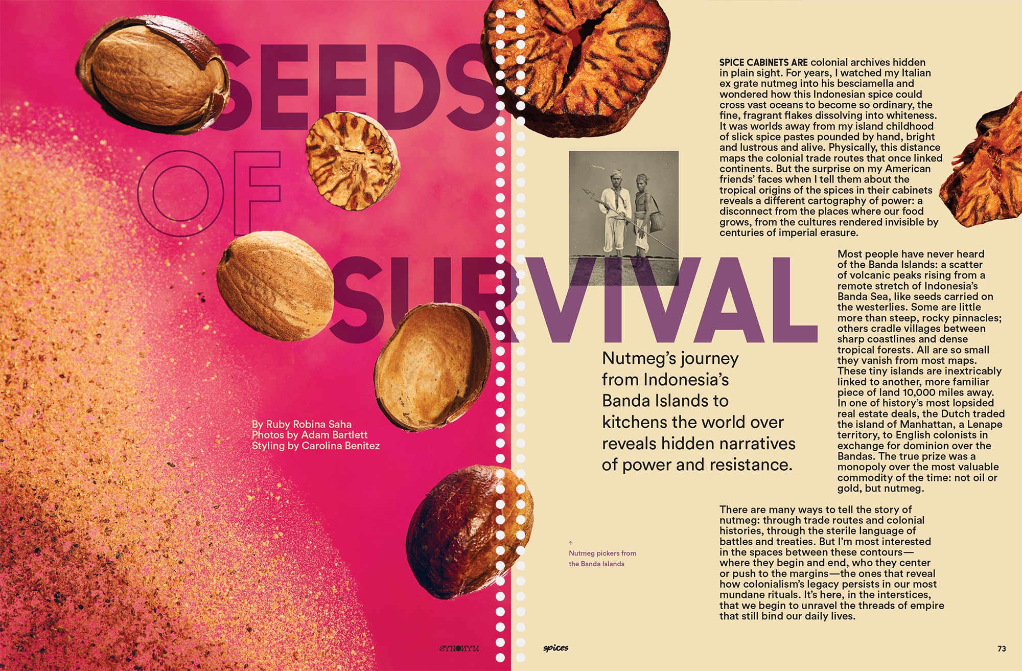 Each issue is based around a theme — pantry, rice & beans, spices, and enclaves so far — so we started assigning a color and implementing a new typeface each time, allowing the design language to grow and evolve while still retaining its overall structure. As opposed to a traditional front and back of book format, recurring stories are sprinkled throughout each issue, breaking up the longer form features when needed. All of the elements are very intentionally gathered — from the writers, the photographers, and the contributing artists — to be a part of and nurture a growing sense of community and connection with each other as these stories are shared.