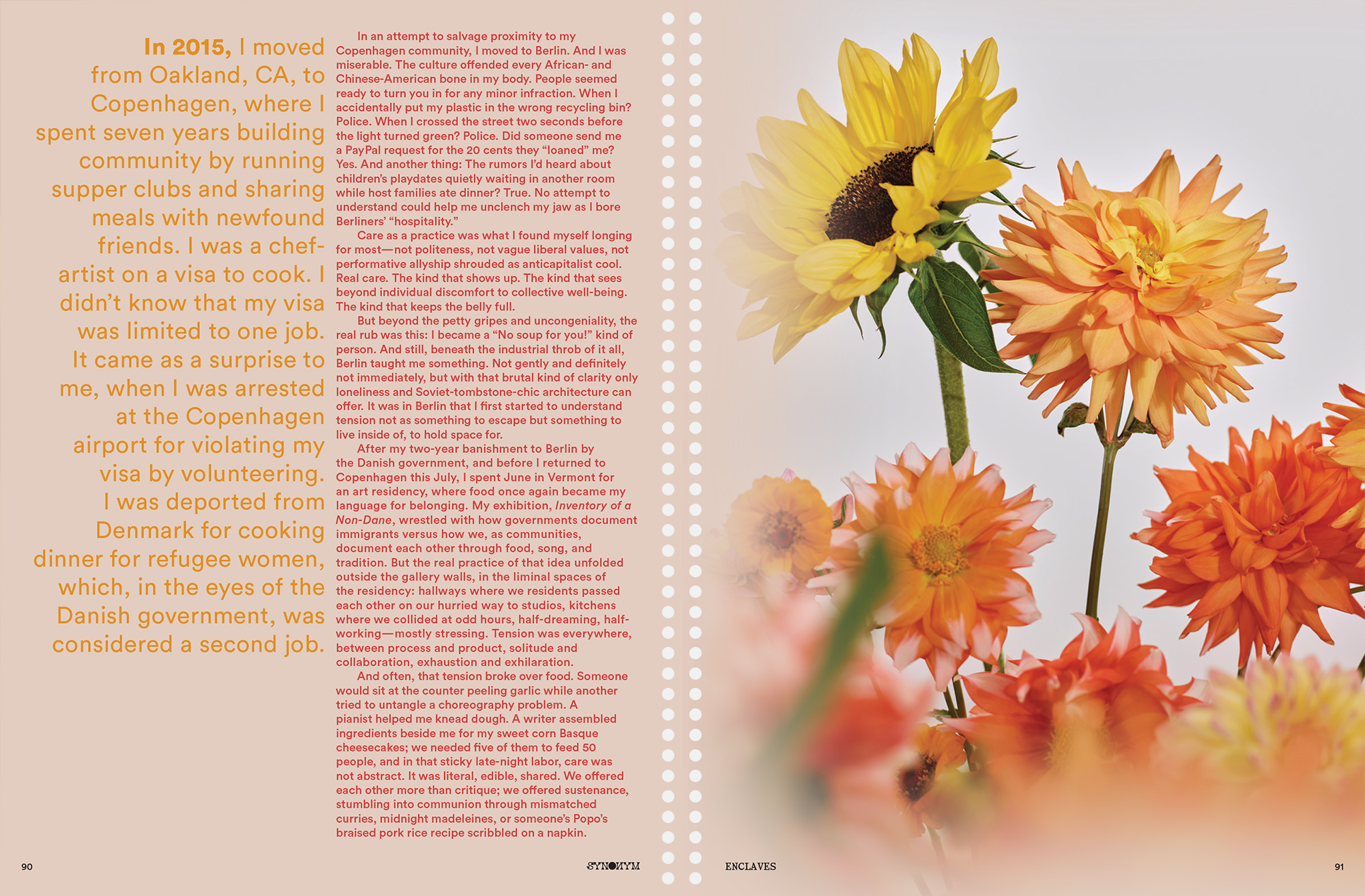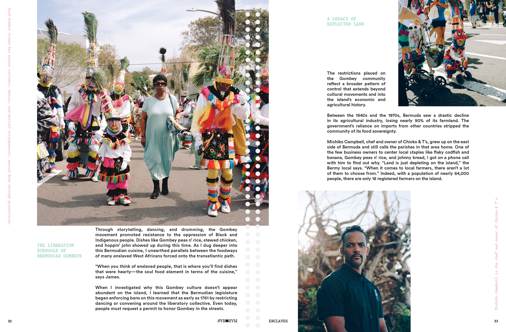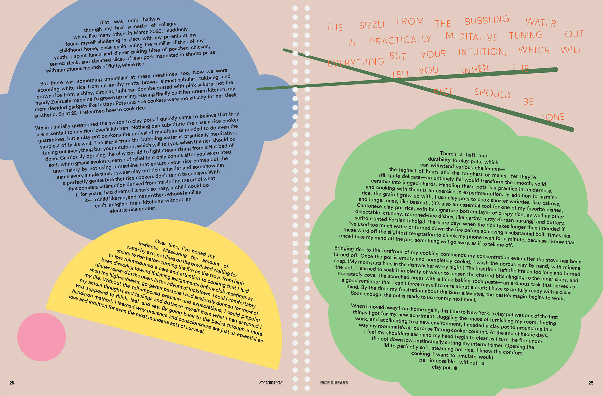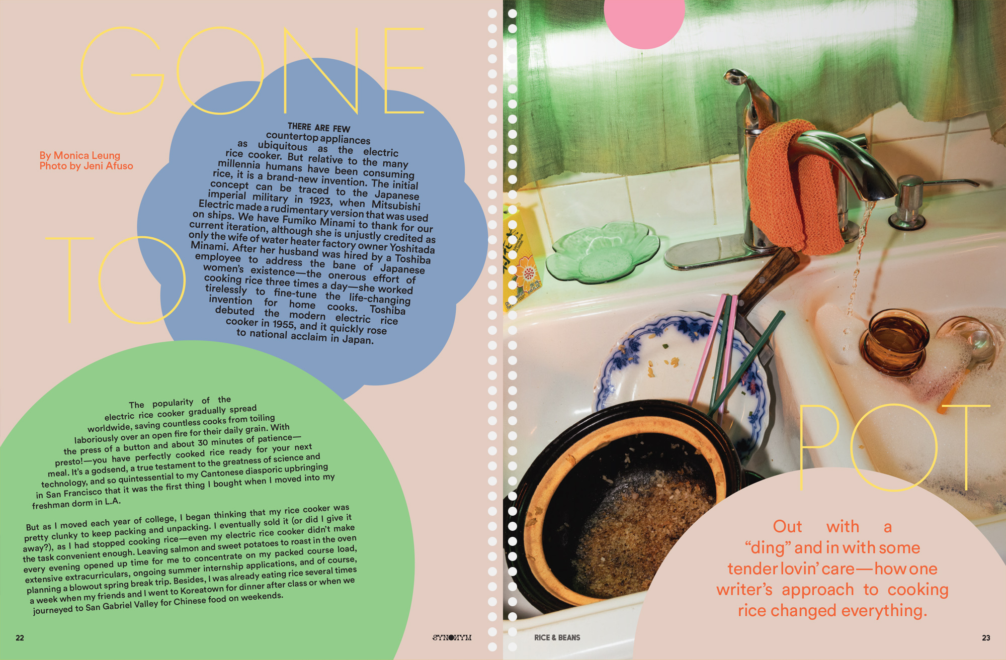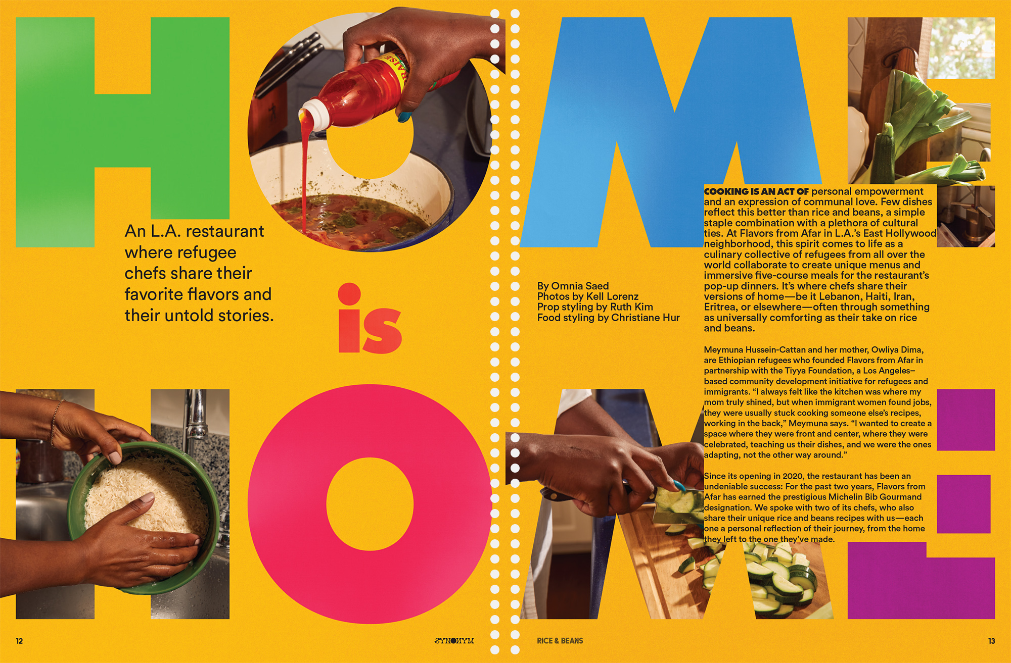 Each issue is based around a theme — pantry, rice & beans, spices, and enclaves so far — so we started assigning a color and implementing a new typeface each time, allowing the design language to grow and evolve while still retaining its overall structure. As opposed to a traditional front and back of book format, recurring stories are sprinkled throughout each issue, breaking up the longer form features when needed. All of the elements are very intentionally gathered — from the writers, the photographers, and the contributing artists — to be a part of and nurture a growing sense of community and connection with each other as these stories are shared.